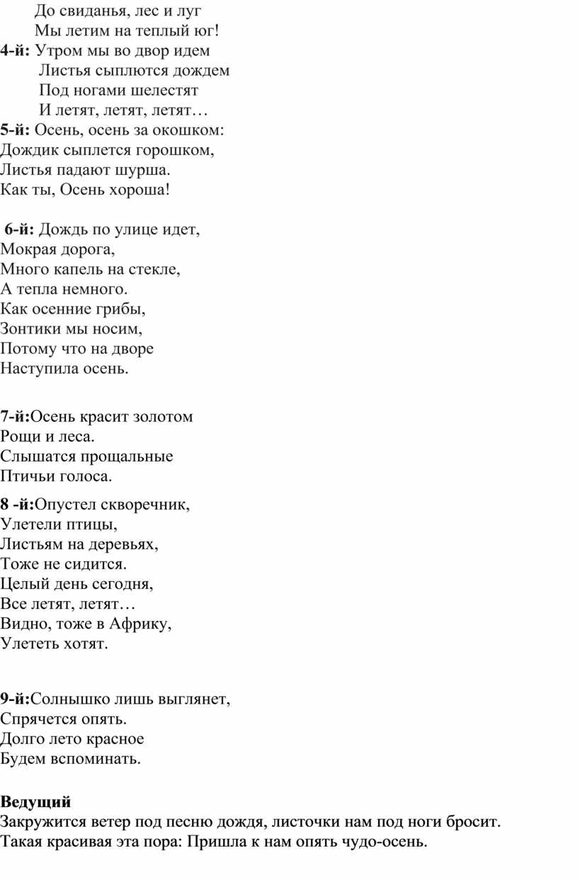 Ведущая: Дорогая Осень, мы с ребятами ждали тебя и подготовили для тебя стихи.