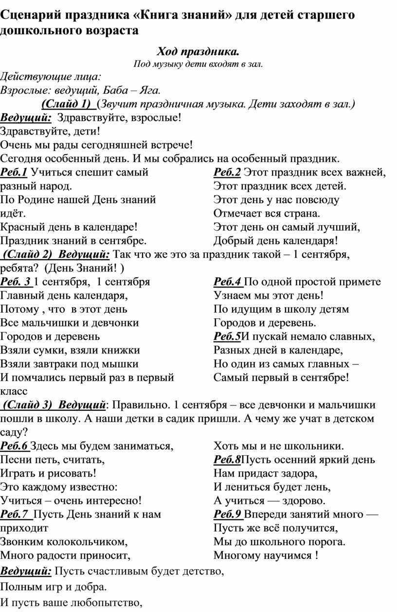 Сценарий праздника «Книга знаний» для детей старшего дошкольного возраста