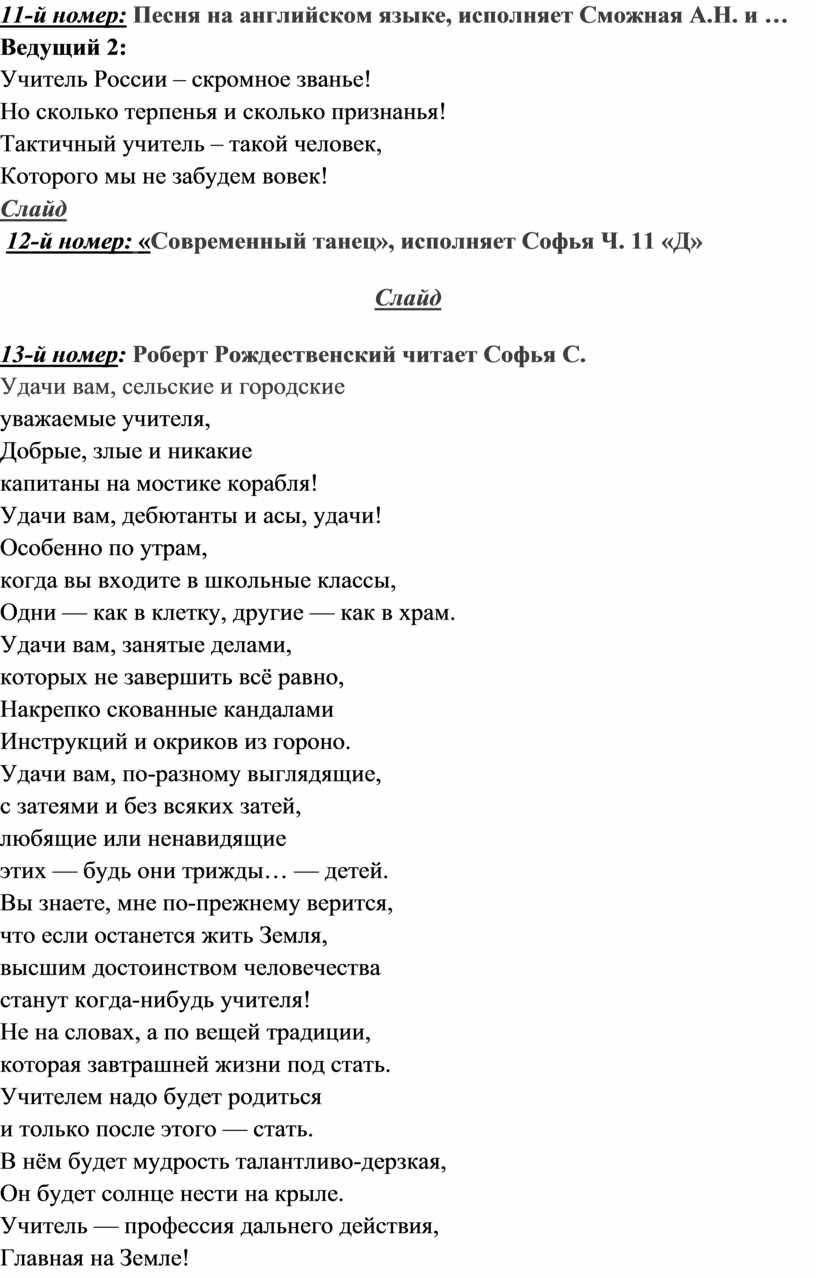 11-й номер: Песня на английском языке, исполняет Сможная А.Н. и …