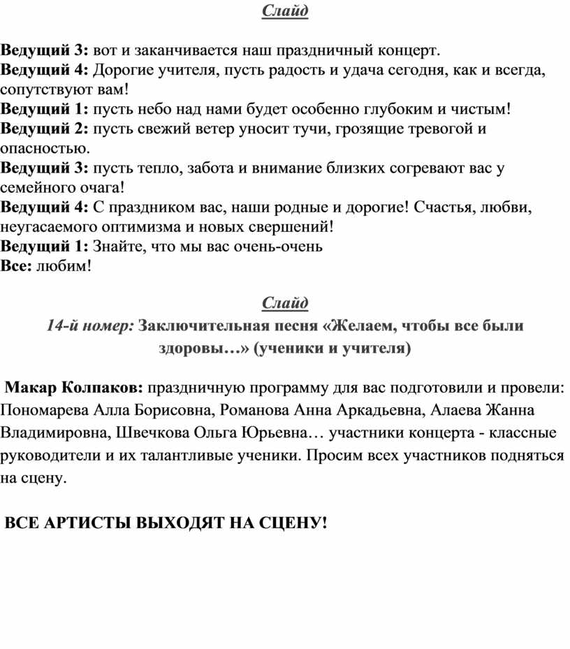 Ведущий 3: вот и заканчивается наш праздничный концерт.