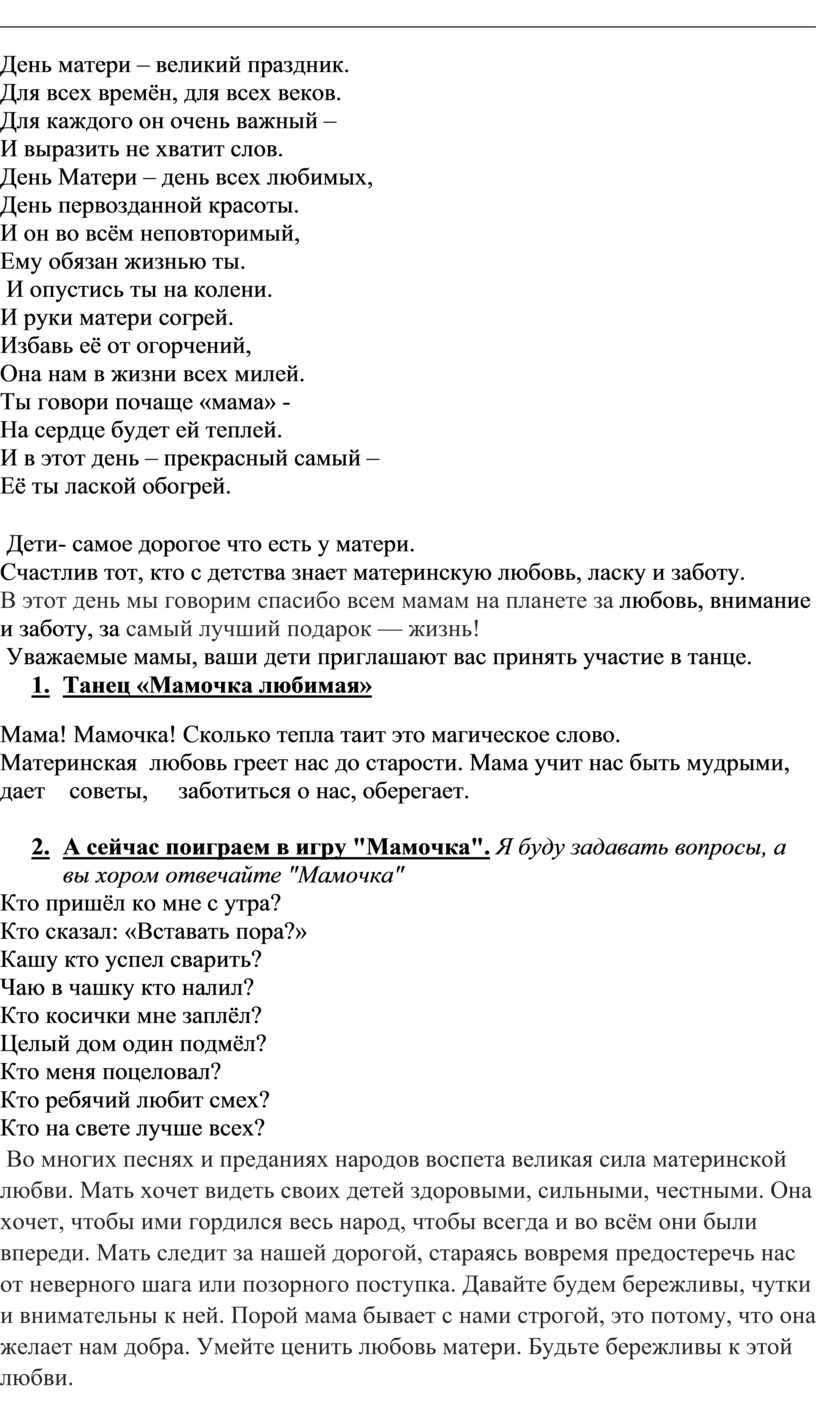 Сценарий праздника "День Матери" 2024-25 уч. год.