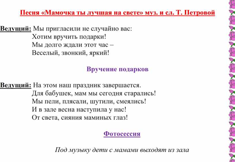 Песня «Мамочка ты лучшая на свете» муз. и сл. Т. Петровой