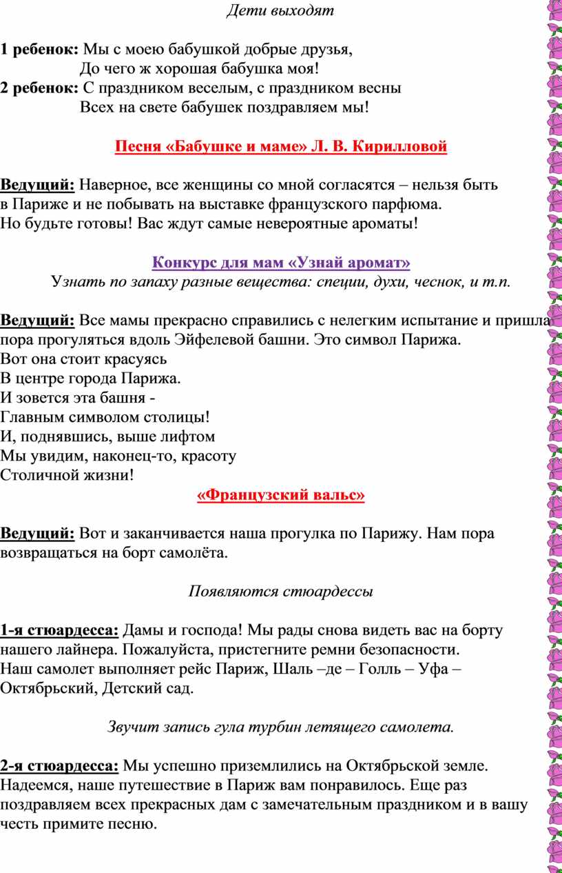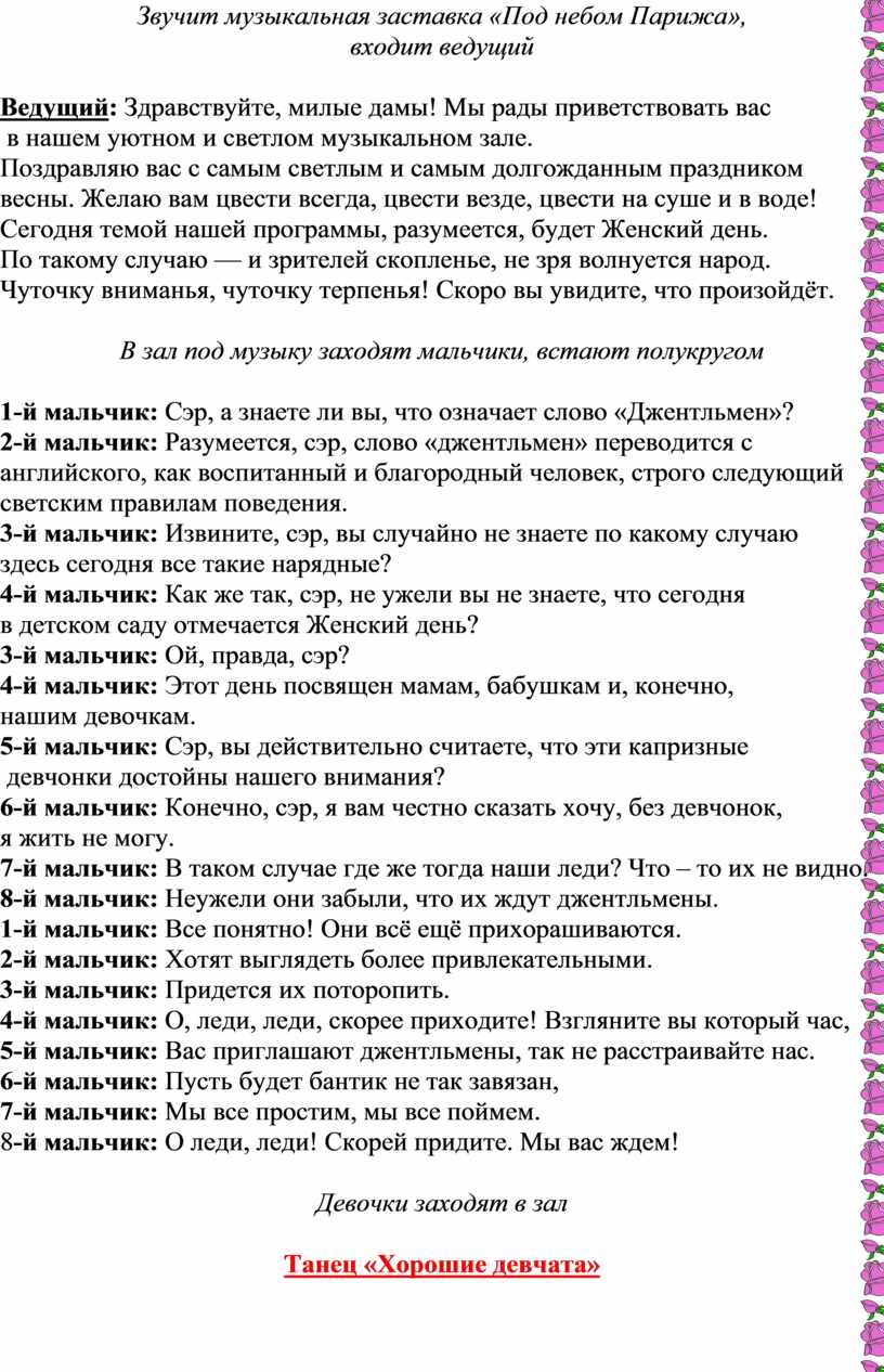 Сценарий праздника на 8 марта