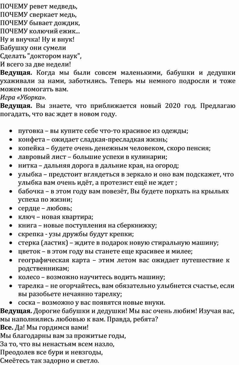 Ведущая. Дорогие бабушки и дедушки! Мы вас очень любим! Изучая вас, мы наполнились любовью к вам. Правда, ребята?