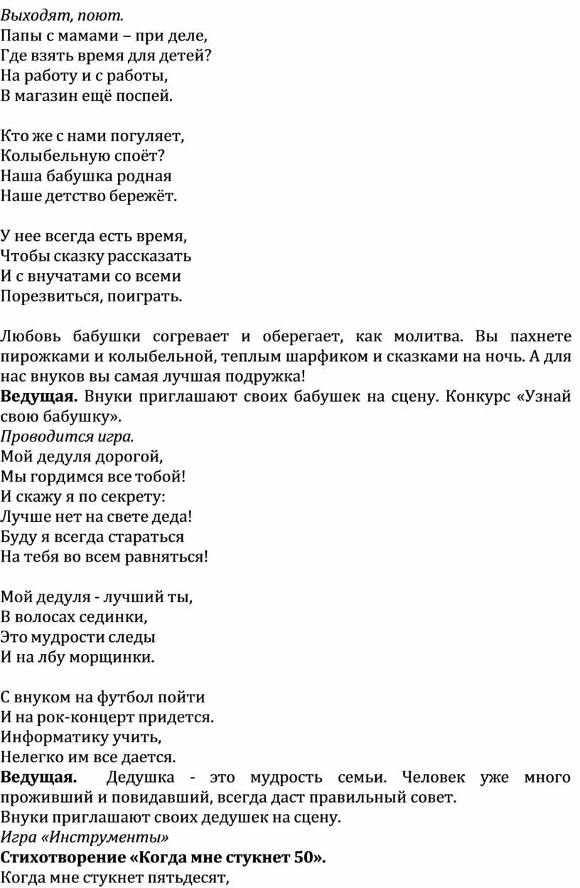 Ведущая. Дедушка - это мудрость семьи. Человек уже много проживший и повидавший, всегда даст правильный совет.