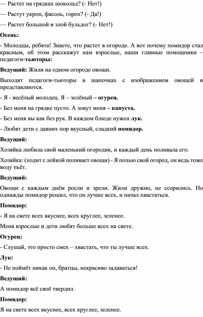 - Молодцы, ребята! Знаете, что растет в огороде. А вот почему помидор стал красным, об этом расскажут нам взрослые, наши главные помощники – педагоги-тьюторы: