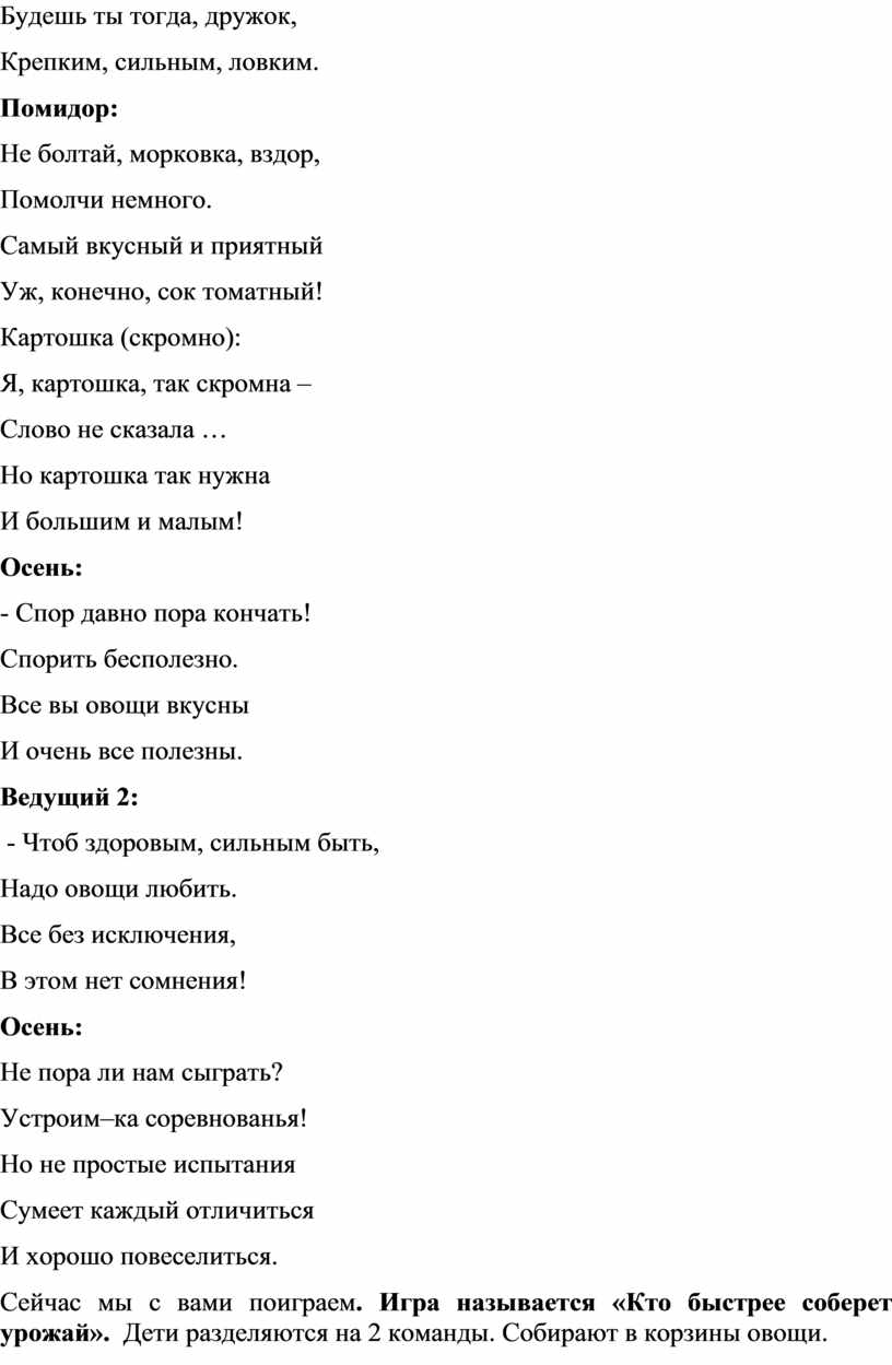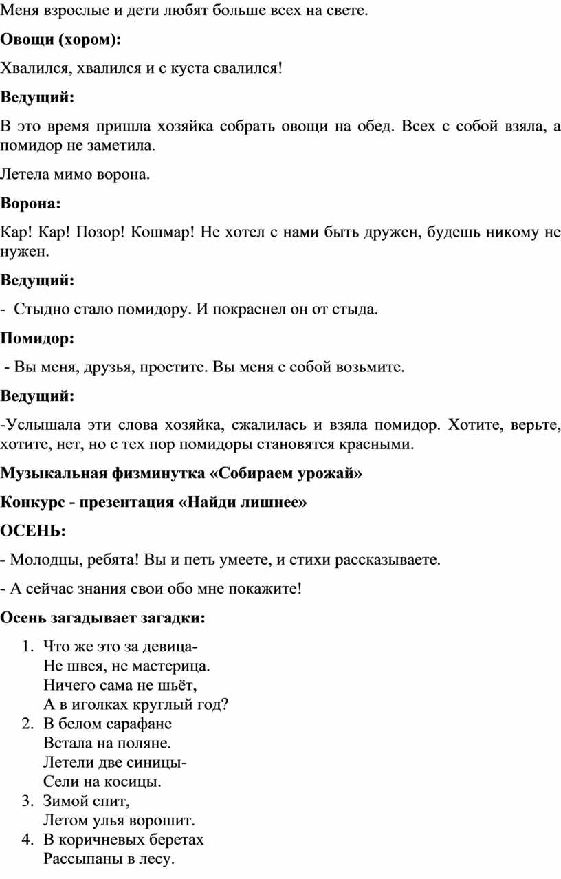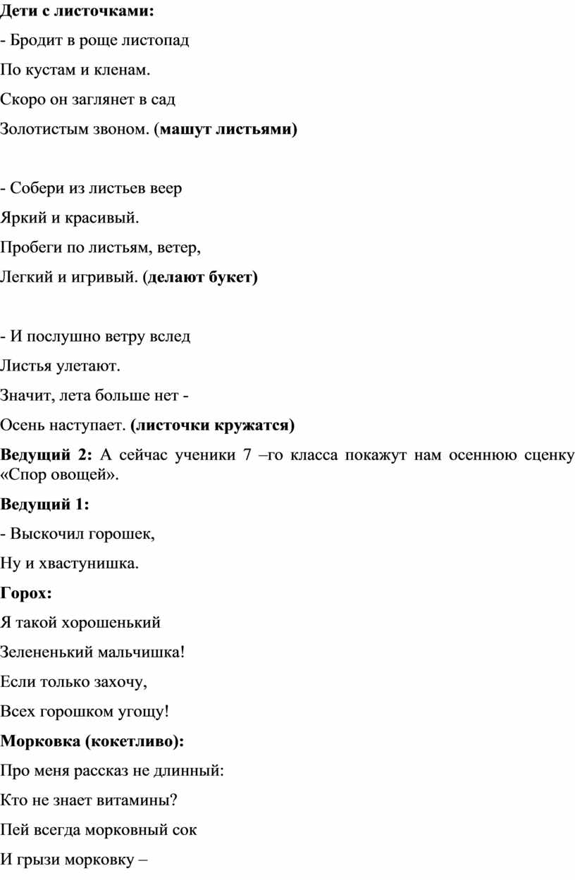 Ведущий 2: А сейчас ученики 7 –го класса покажут нам осеннюю сценку «Спор овощей».