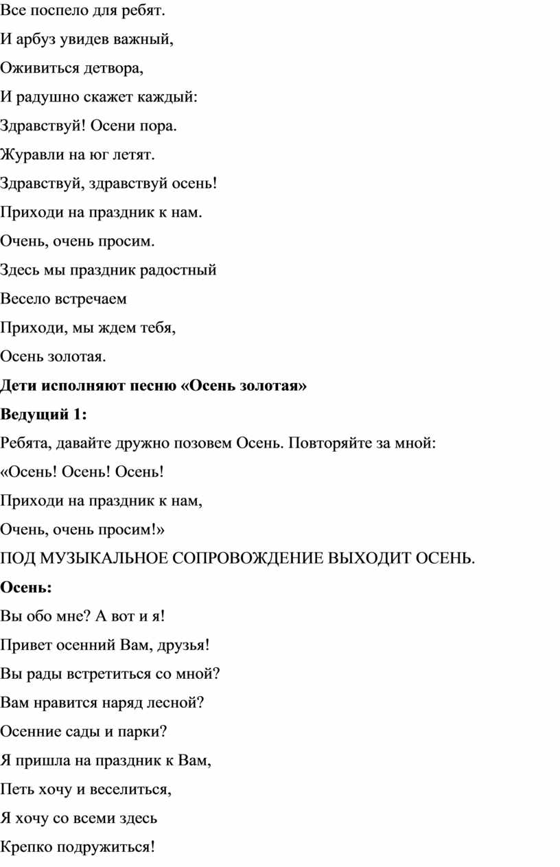 Ребята, давайте дружно позовем Осень. Повторяйте за мной: