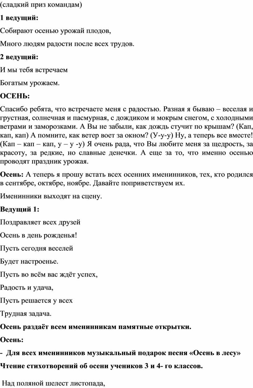 - Для всех именинников музыкальный подарок песня «Осень в лесу»