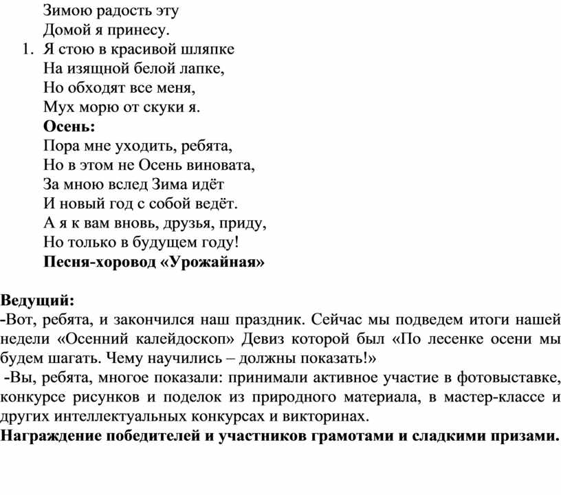 Сценарий праздника «Осенний калейдоскоп»