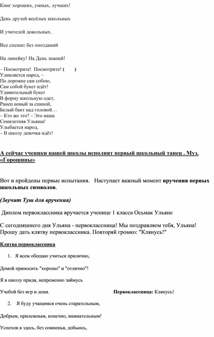 Сценарий праздника "Посвящение в первоклассники" 2024-25 уч. год.