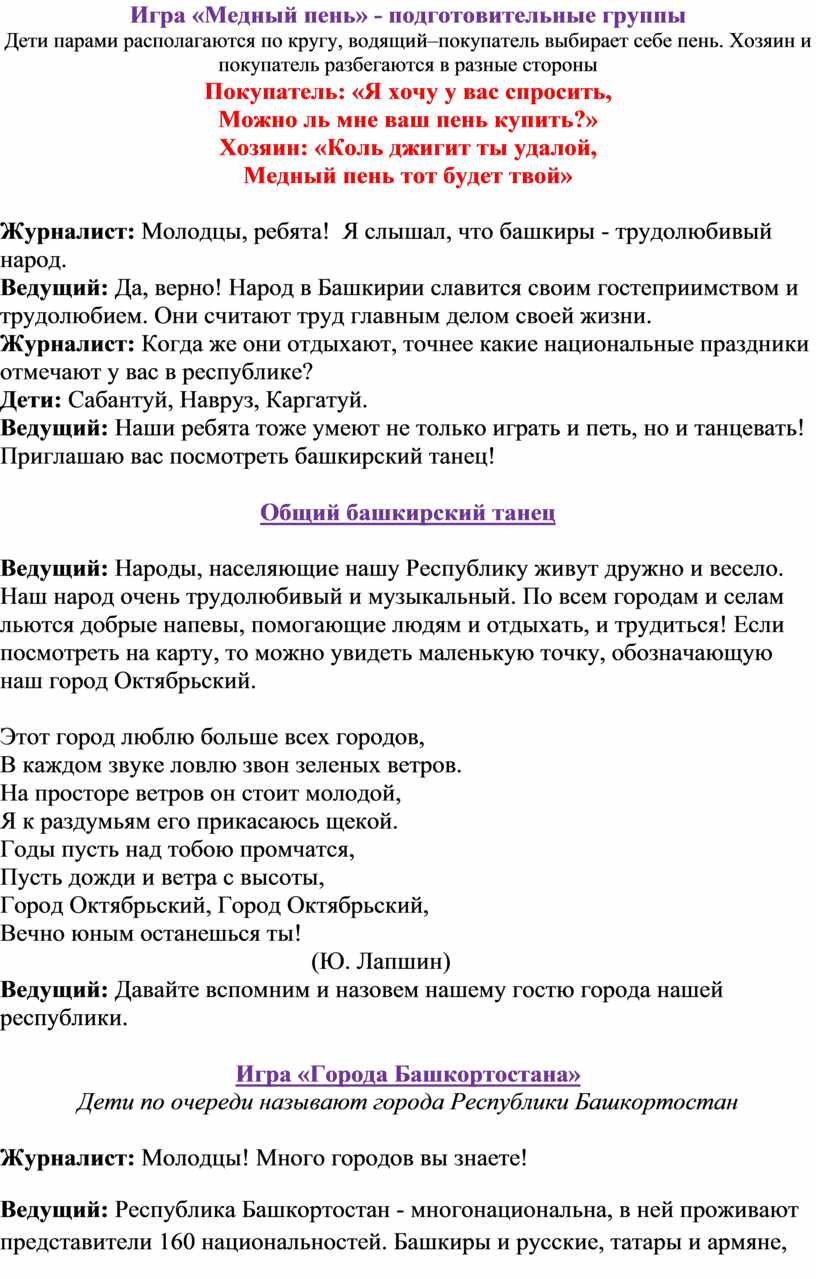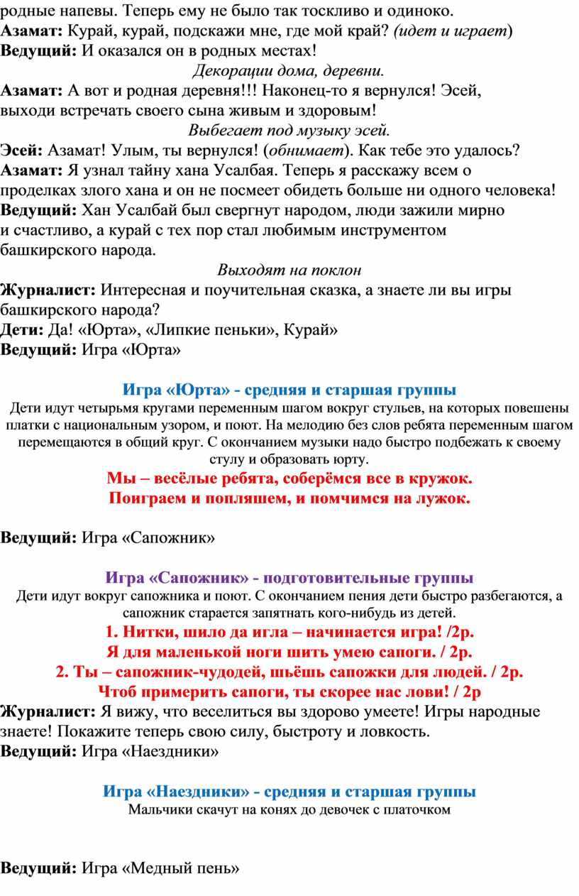 Журналист: Интересная и поучительная сказка, а знаете ли вы игры башкирского народа?