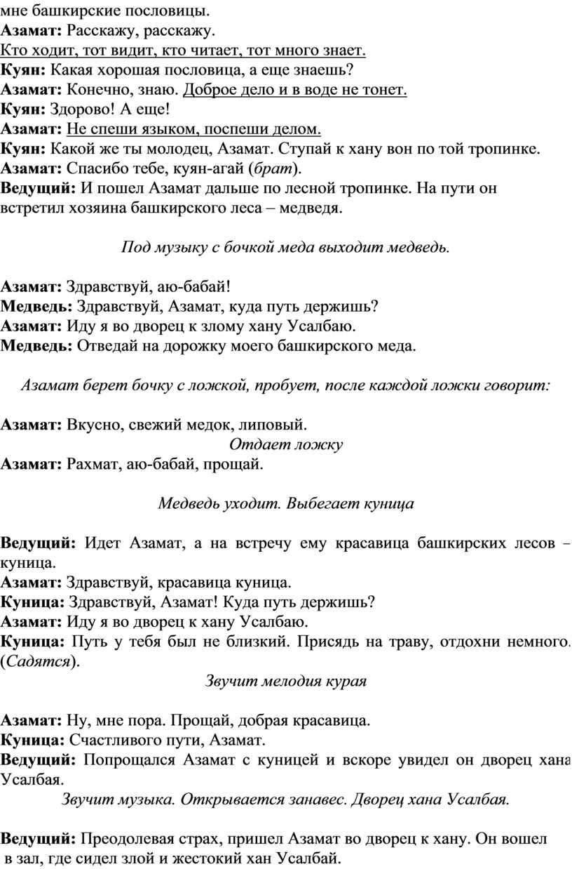 Ведущий: И отправился Азамат бродить по дальним просторам.