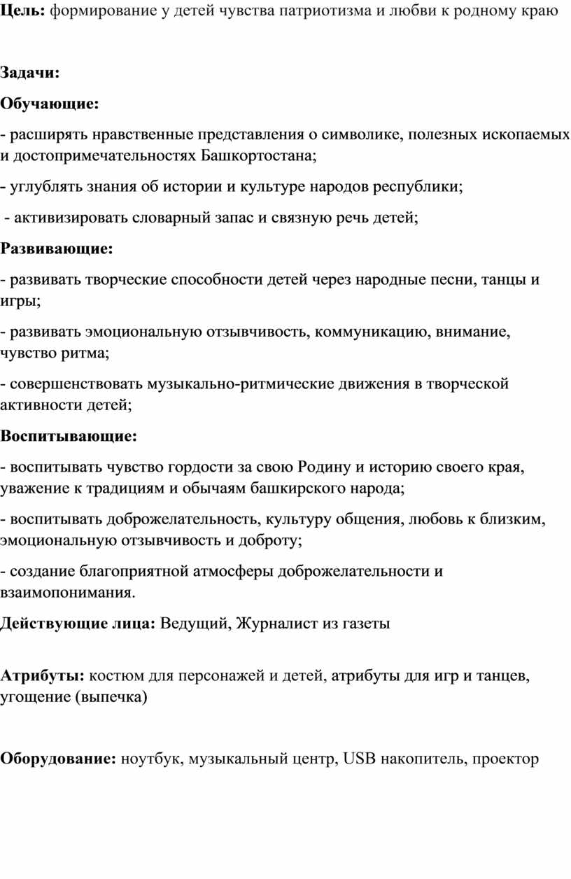 - воспитывать чувство гордости за свою Родину и историю своего края, уважение к традициям и обычаям башкирского народа;