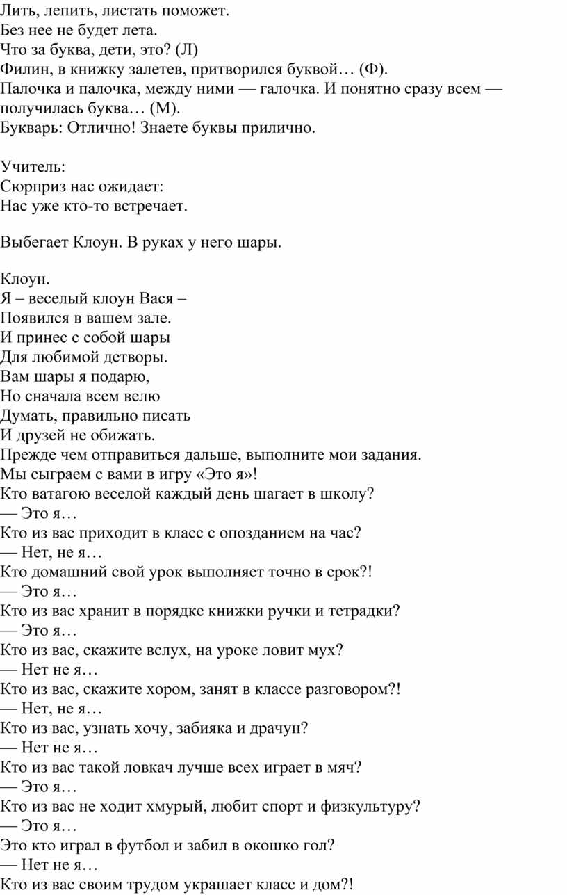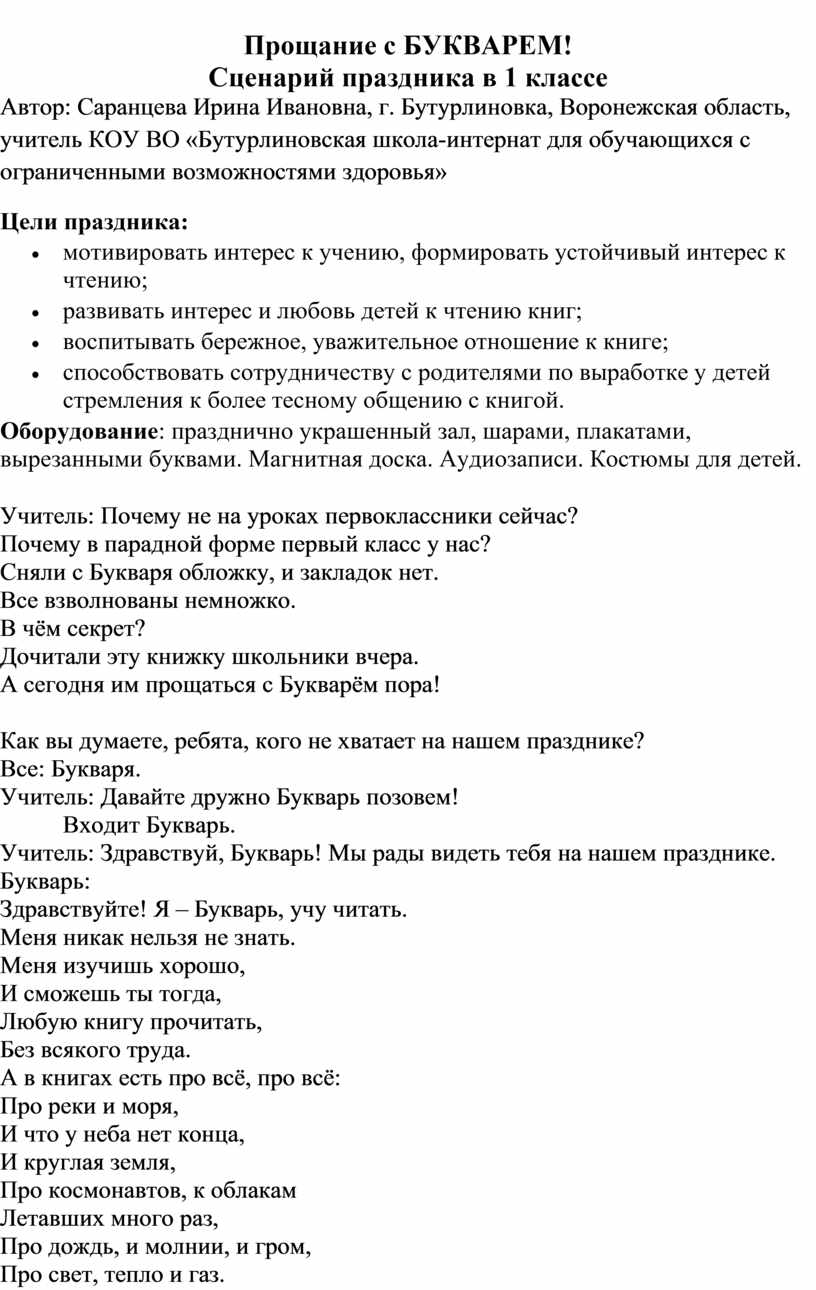 Сценарий праздника в 1 классе