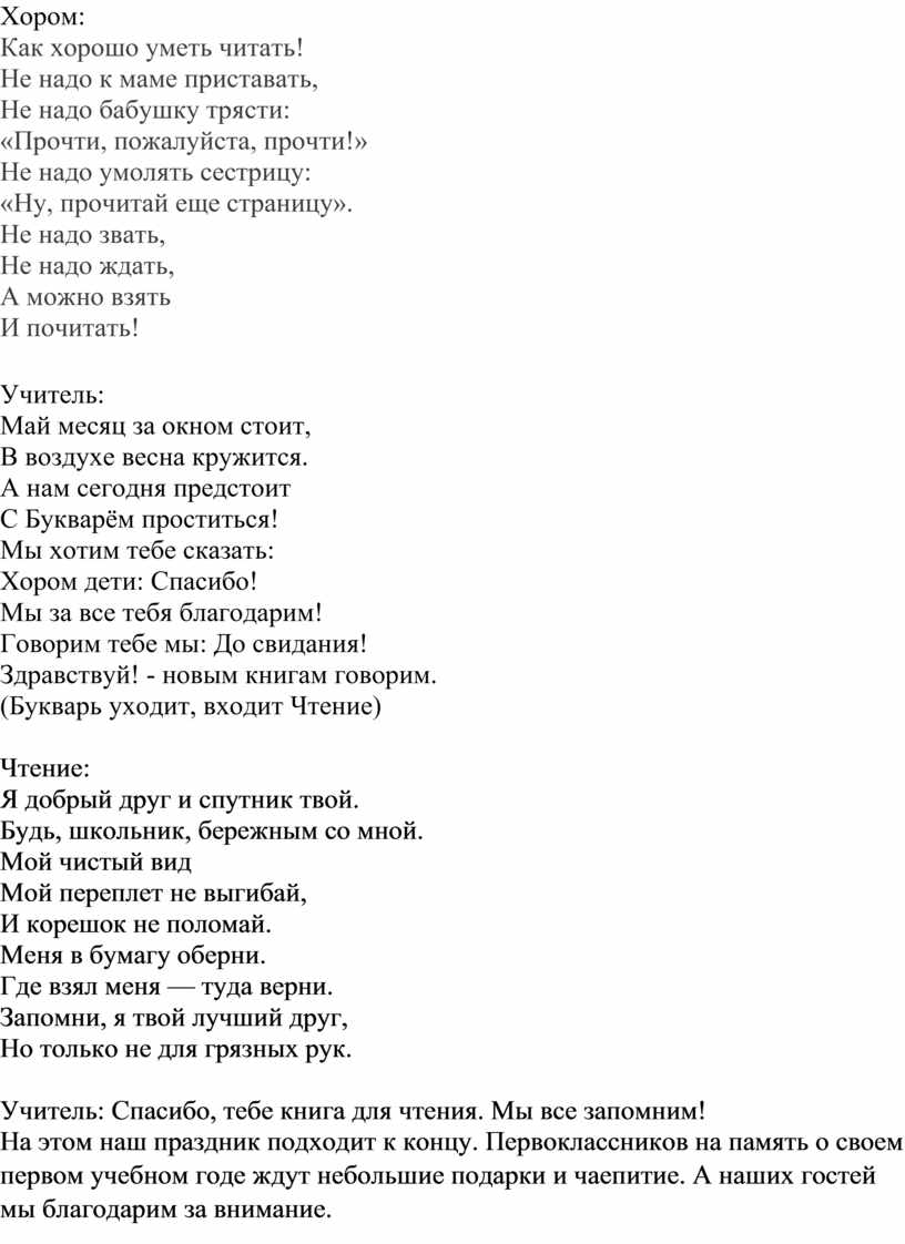 Учитель: Здравствуй, Букварь! Мы рады видеть тебя на нашем празднике.