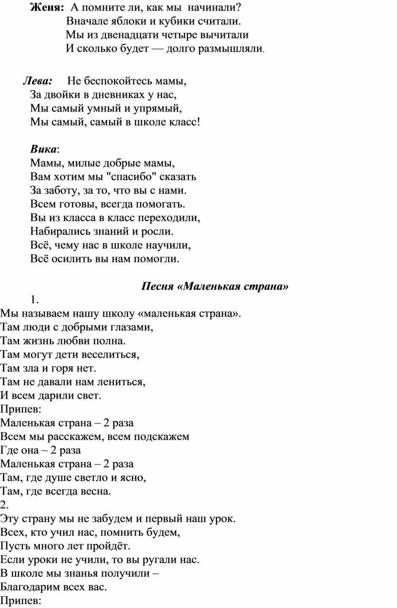 Песня «Маленькая страна»