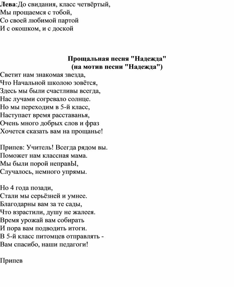 Прощальная песня "Надежда"