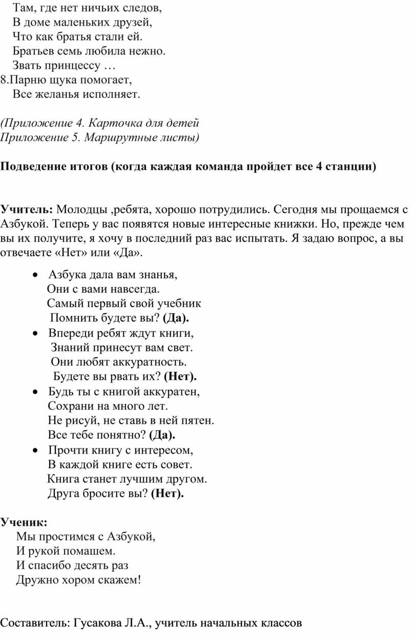 Учитель: Молодцы ,ребята, хорошо потрудились. Сегодня мы прощаемся с Азбукой. Теперь у вас появятся новые интересные книжки. Но, прежде чем вы их получите, я хочу в последний раз вас испытать. Я задаю вопрос, а вы отвечаете «Нет» или «Да».