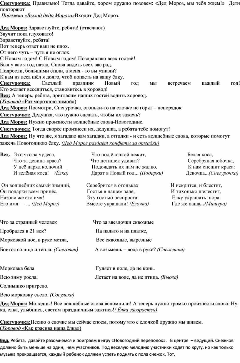 Снегурочка: Тогда скорее произнеси их, дедушка, а ребята тебе