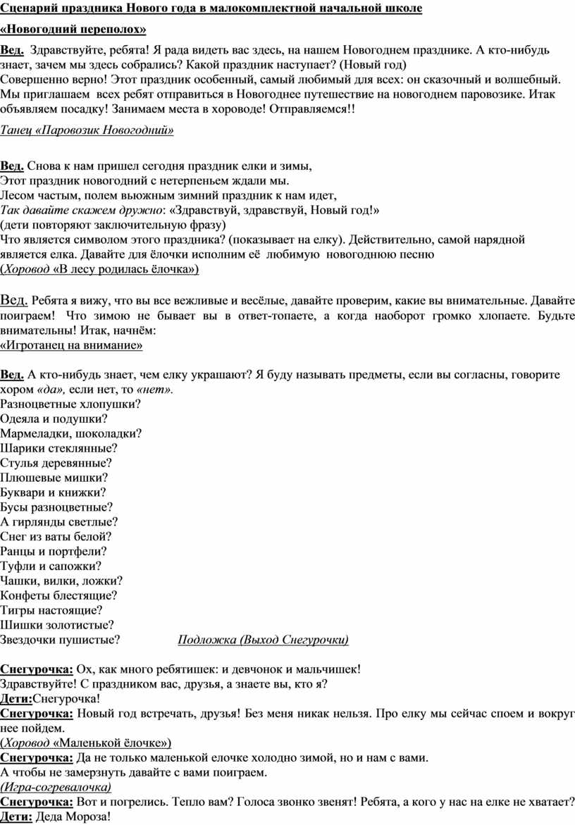 Сценарий праздника Нового года в малокомплектной начальной школе
