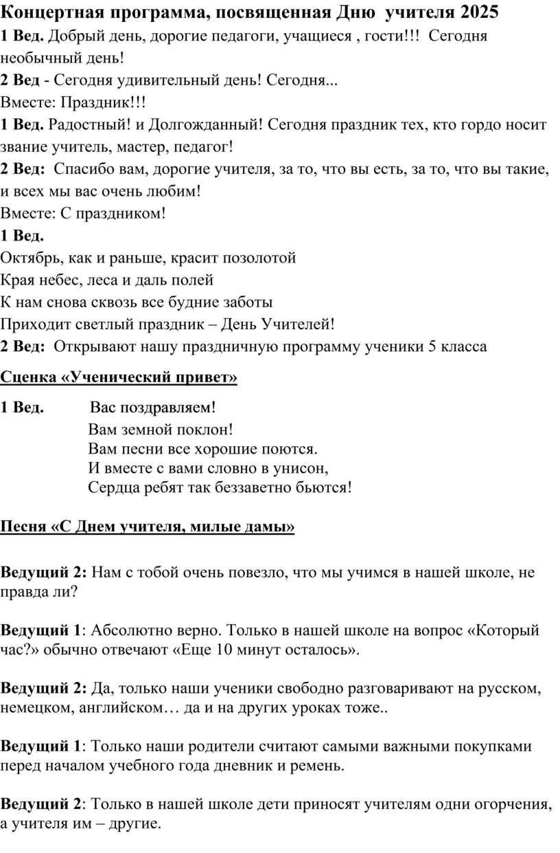 1 Вед. Радостный! и Долгожданный! Сегодня праздник тех, кто гордо носит звание учитель, мастер, педагог!