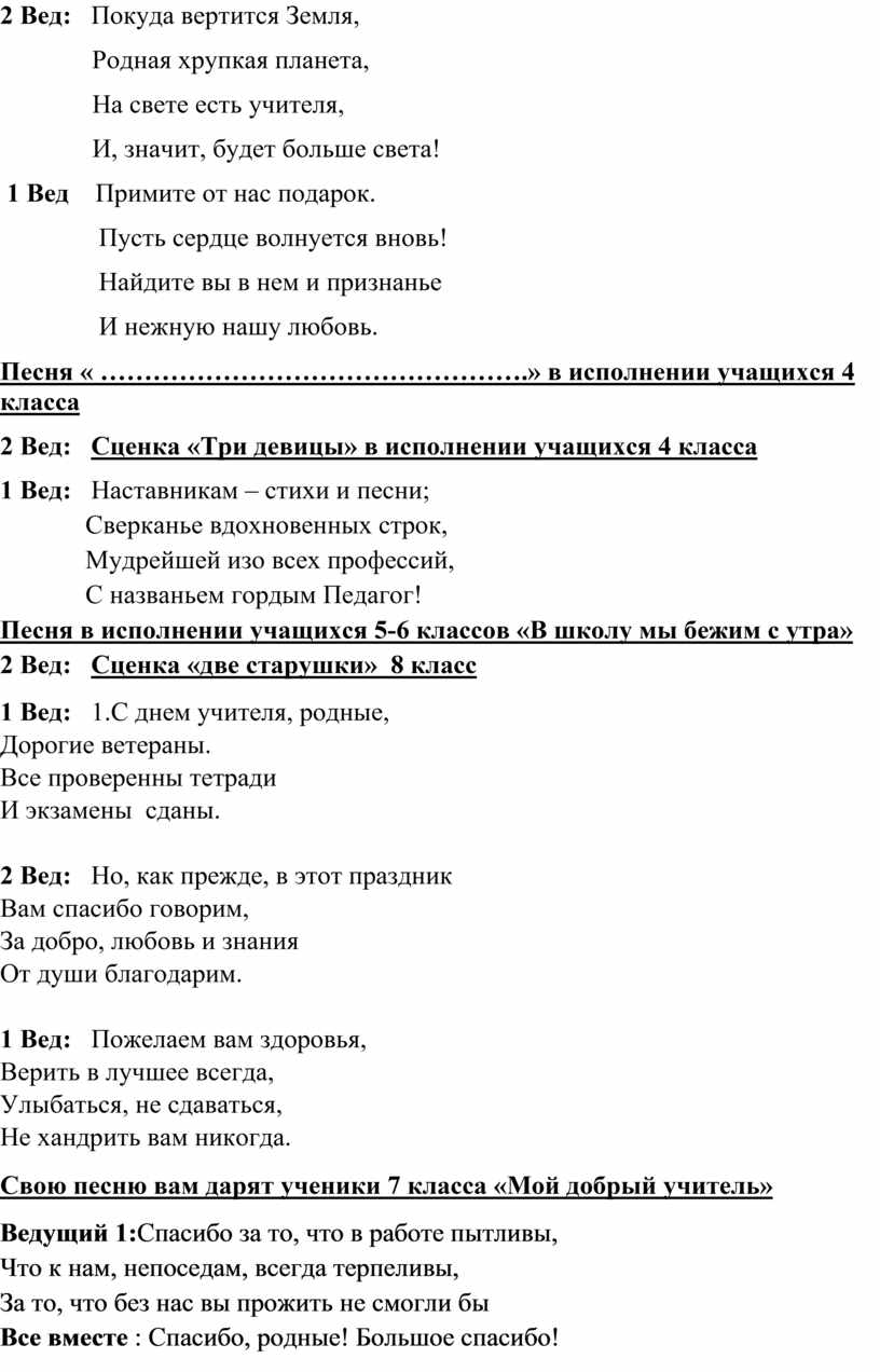 2 Вед: Спасибо вам, дорогие учителя, за то, что вы есть, за то, что вы такие, и всех мы вас очень любим!