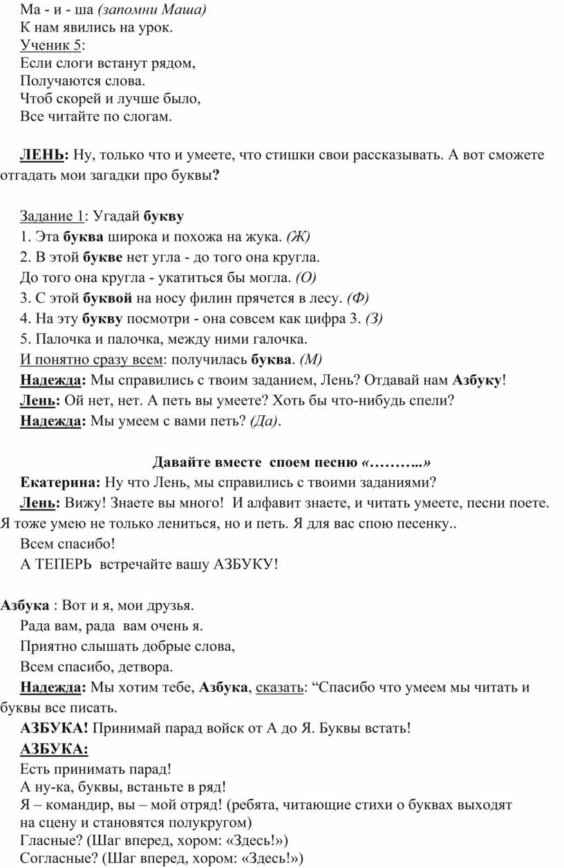 (Вместо Азбуки приходит ЛЕНЬ)