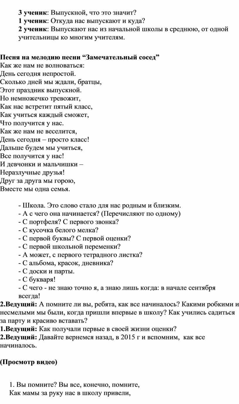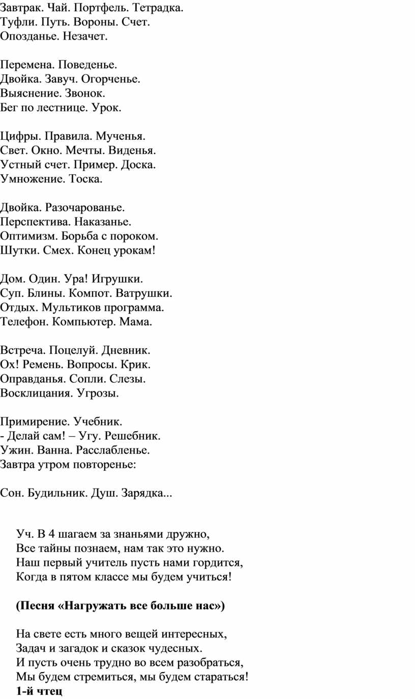 2 ученик: Выпускают нас из начальной школы в среднюю, от одной учительницы ко многим учителям.