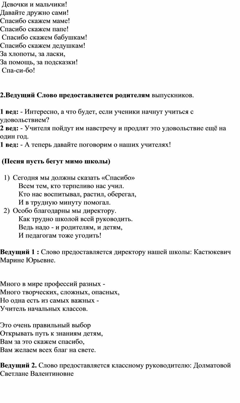 Ведущий 2. Слово предоставляется классному руководителю: Долматовой Светлане Валентиновне