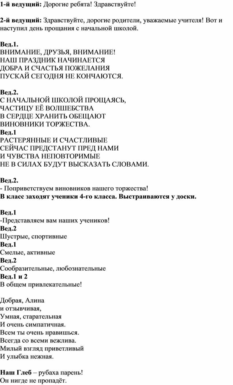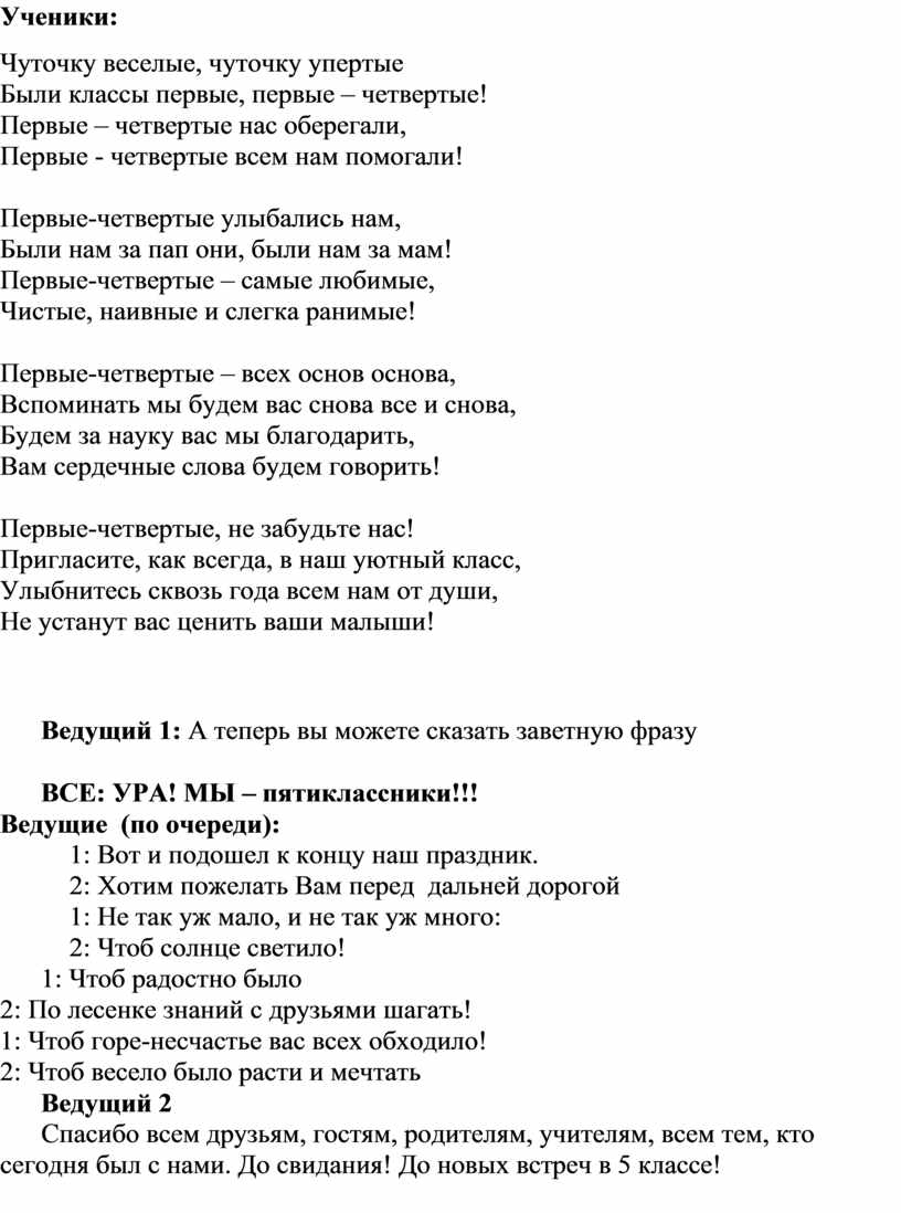 наступил день прощания с начальной школой.
