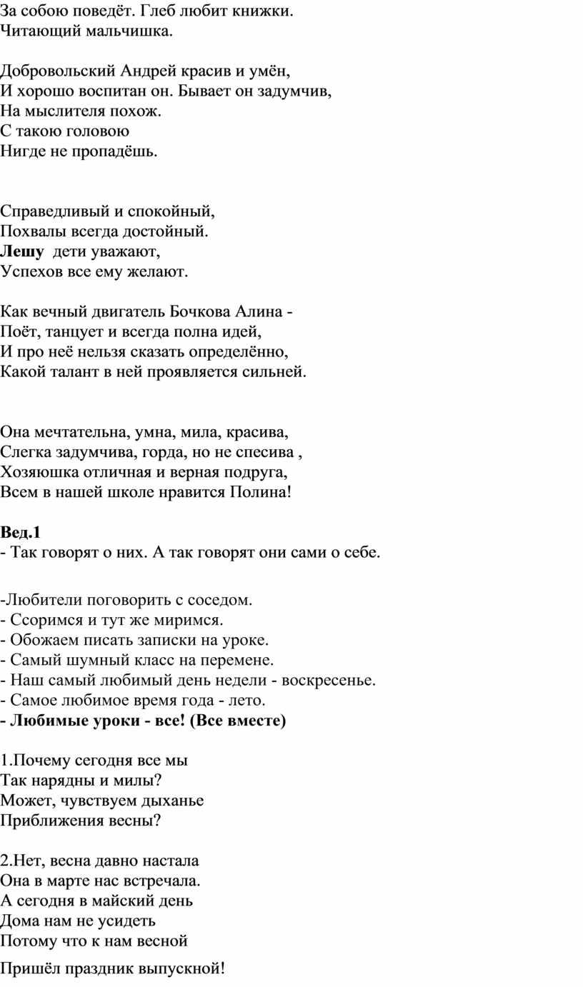 2 вед: - Учителя пойдут им навстречу и продлят это удовольствие ещё на один год.