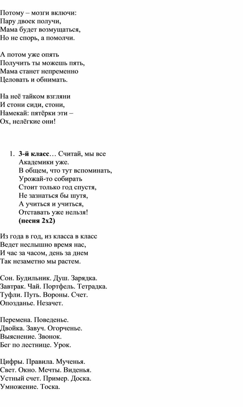 (Песня пусть бегут мимо школы)