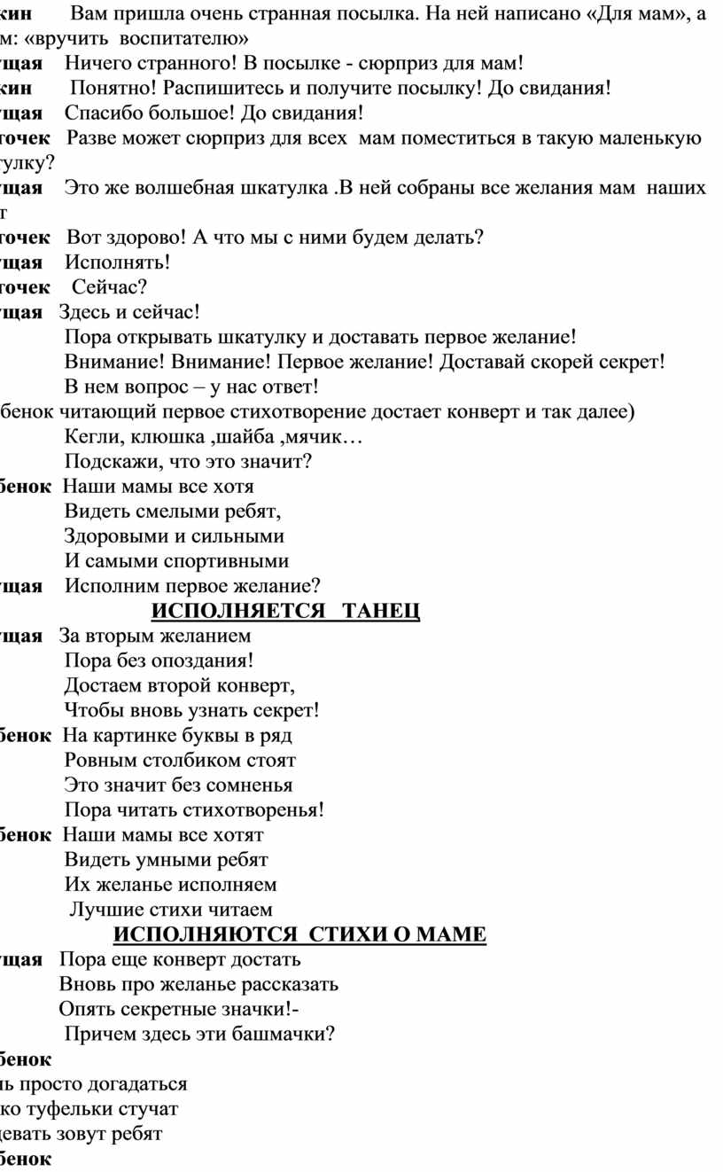 Печкин Вам пришла очень странная посылка. На ней написано «Для мам», а рядом: «вручить воспитателю»