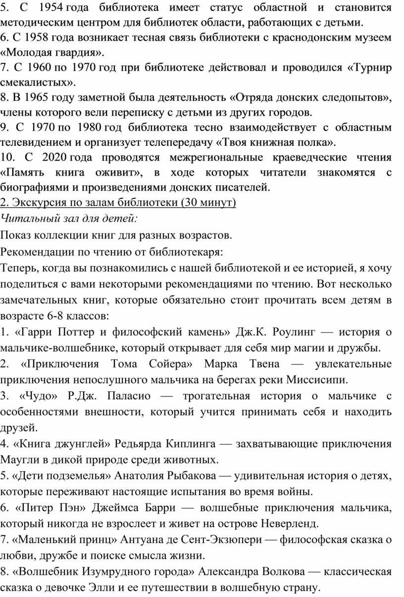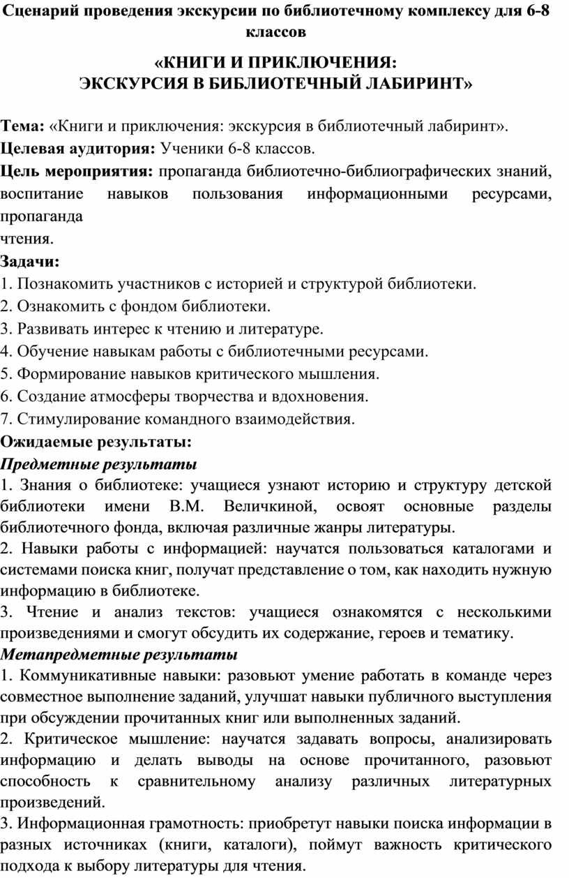 Сценарий проведения экскурсии по библиотечному комплексу для 6-8 классов