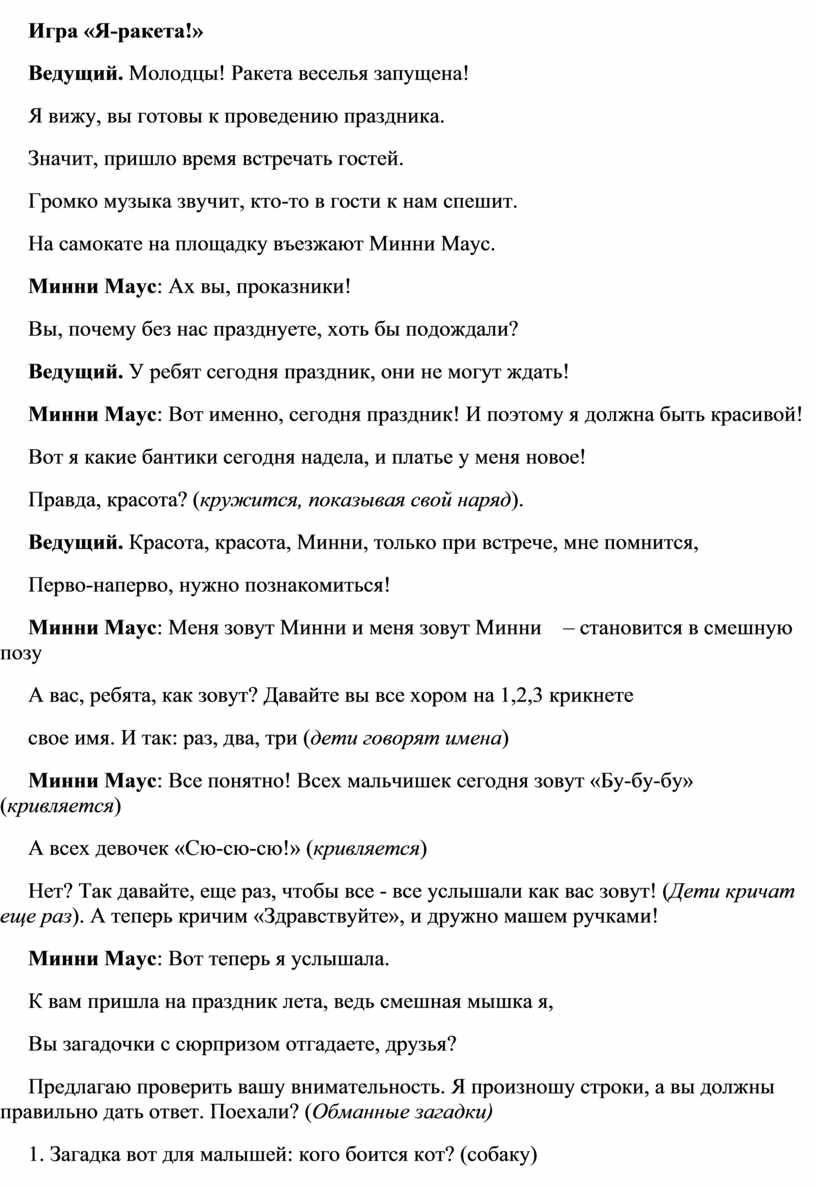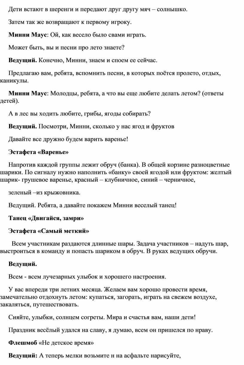 Минни Маус: Молодцы, ребята, а что вы еще любите делать летом? (ответы детей).