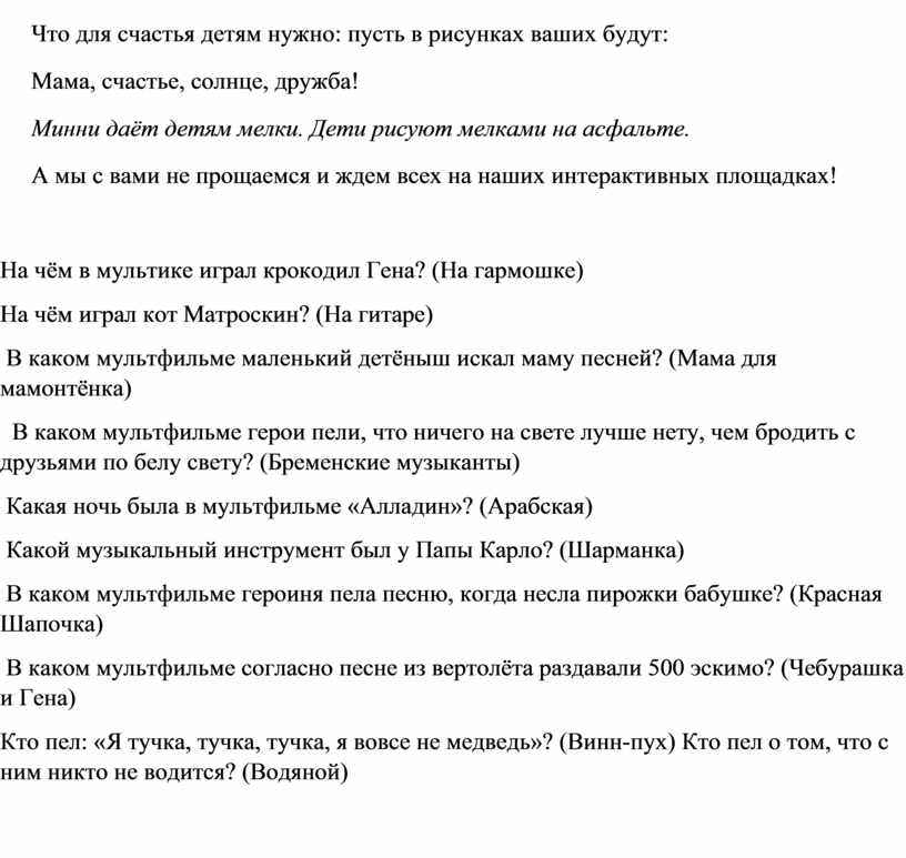 Ведущий: А теперь мелки возьмите н на асфальте нарисуйте,