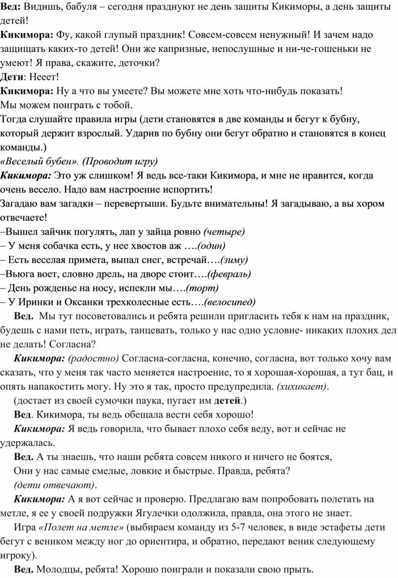 Вед: Ребята, разве сегодня День защиты Кикиморы? Что сегодня за день, ребята?
