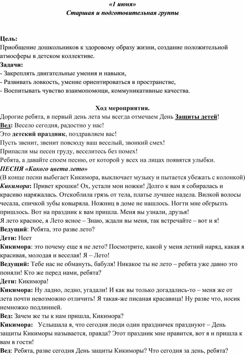 Вед: Видишь, бабуля – сегодня празднуют не день защиты Кикиморы, а день защиты детей!