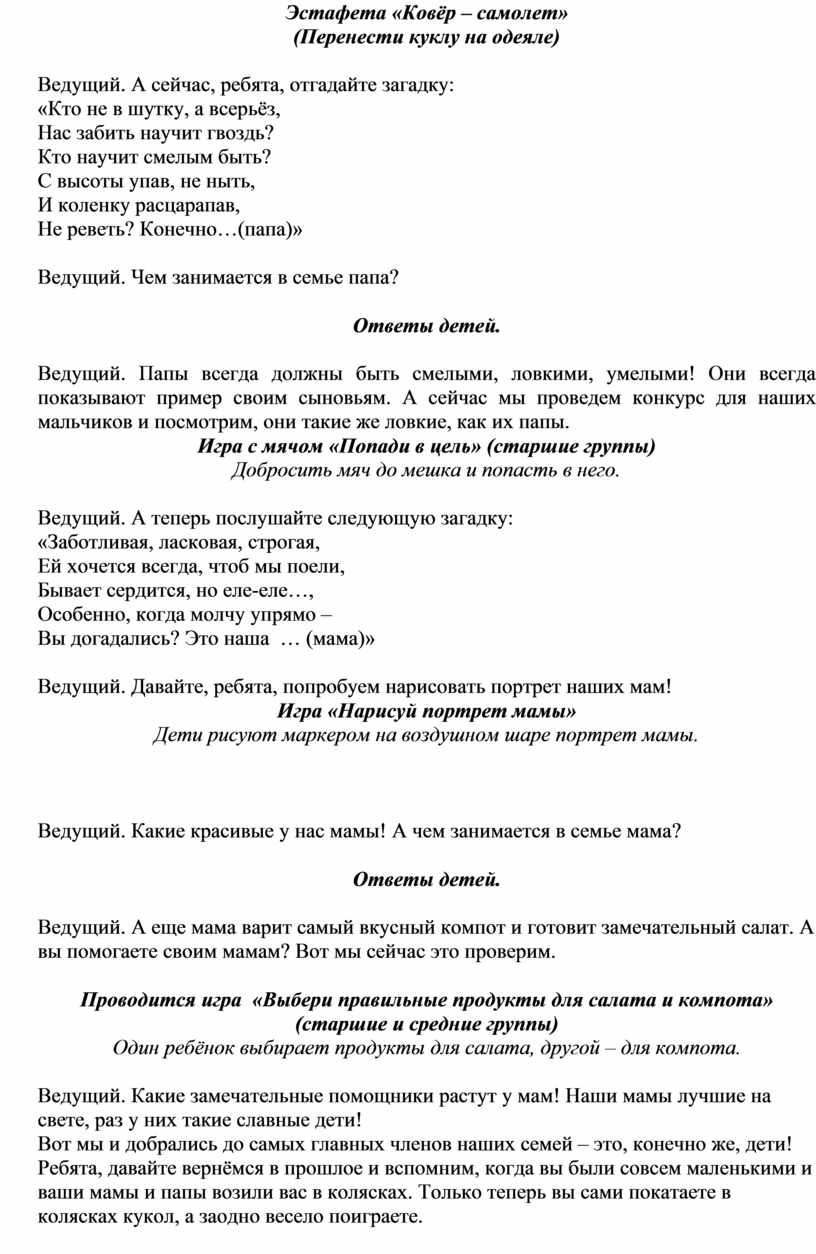 Ведущий. Ребята, сейчас у нас лето! А лето прекрасное время для семейных путешествий! И мы сейчас с вами отправимся в полет на семейном ковре – самолете!