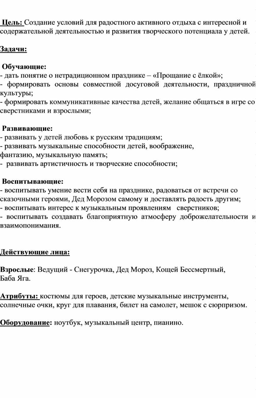 - дать понятие о нетрадиционном празднике – «Прощание с ёлкой»;