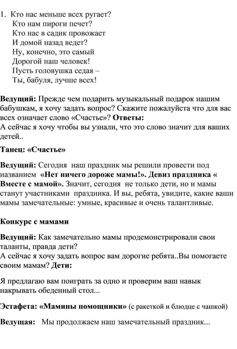 Сценарий День Матери в подгот. группе «Нет ничего дороже мамы!»»