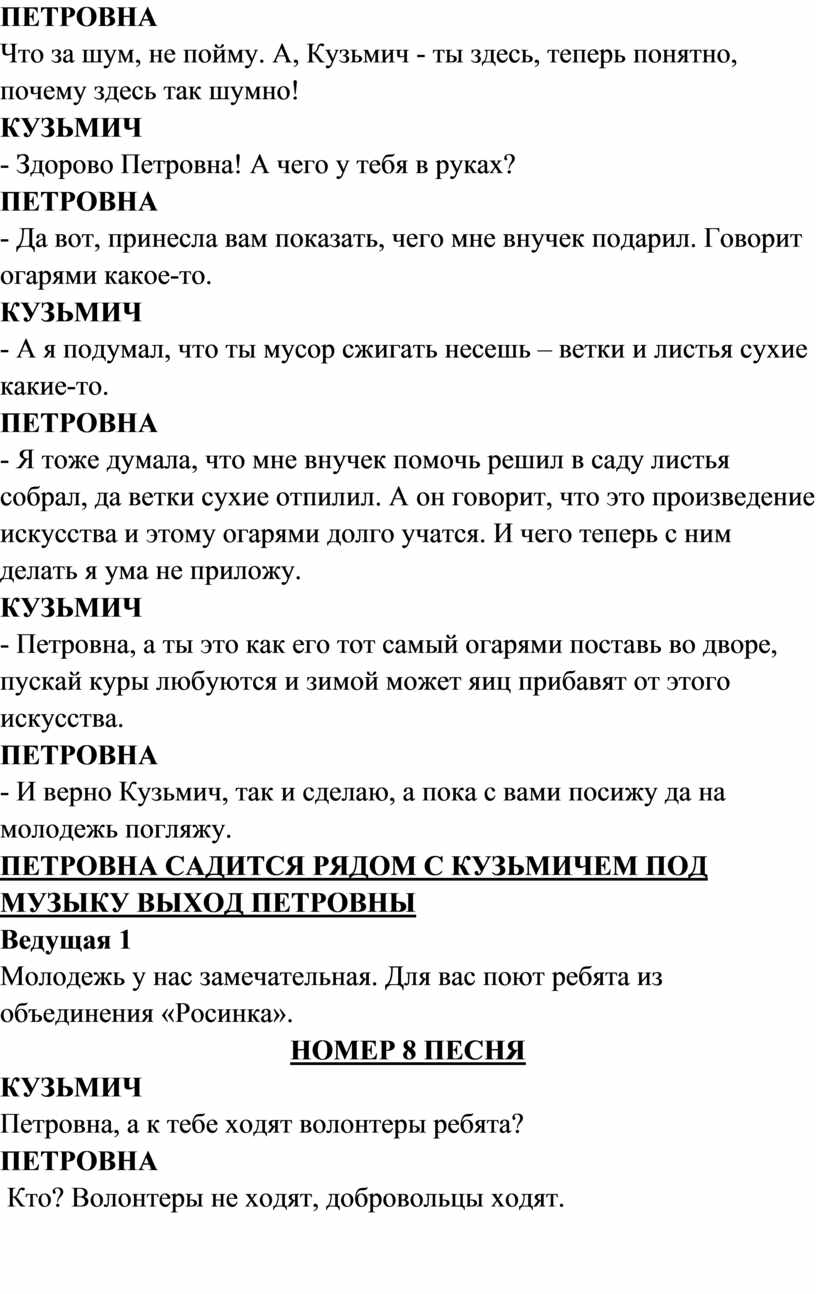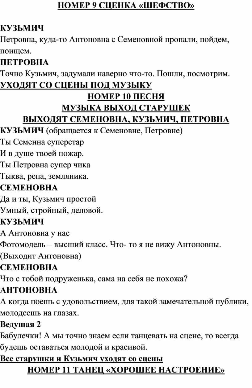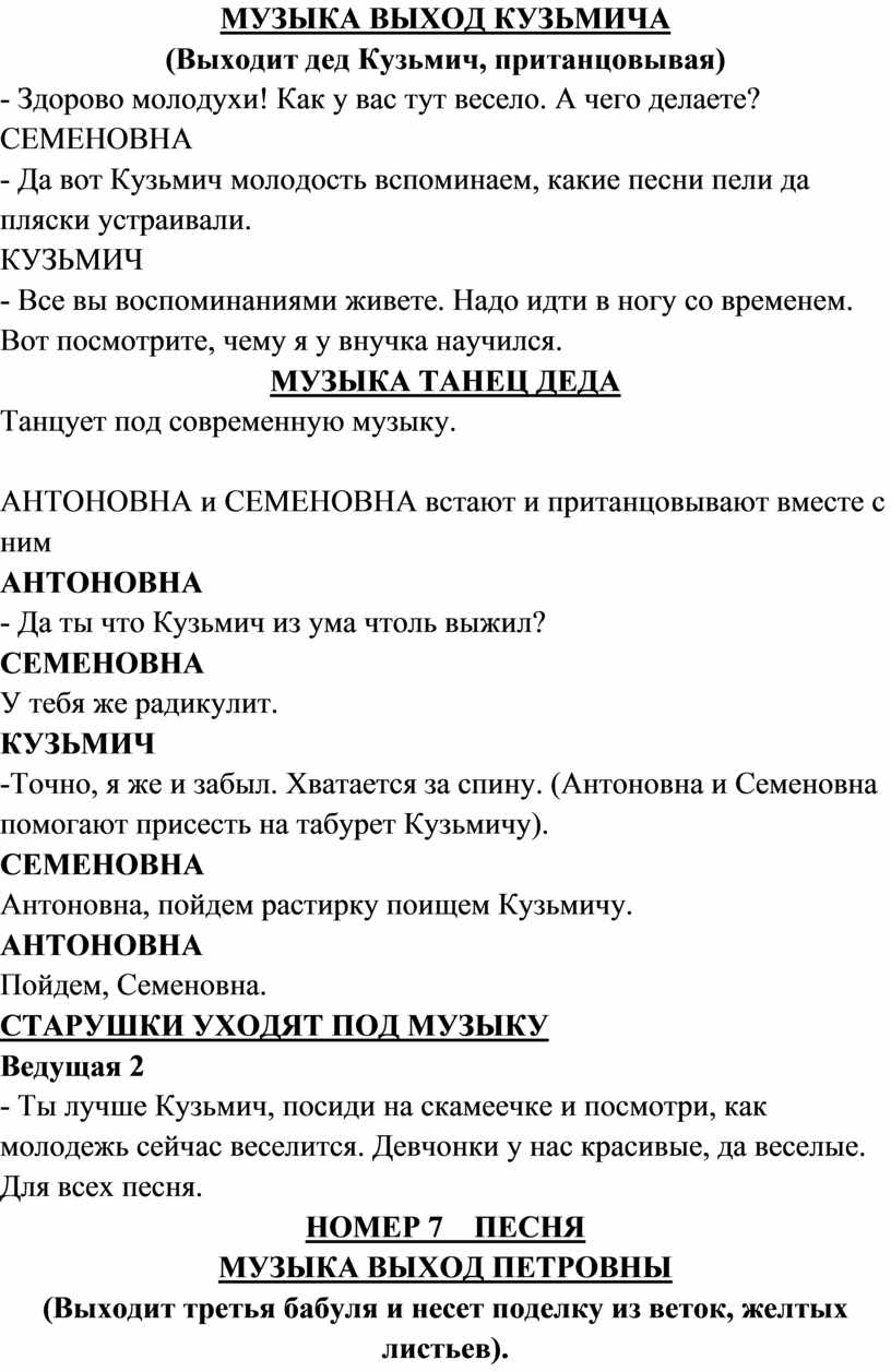 Все старушки и Кузьмич уходят со сцены