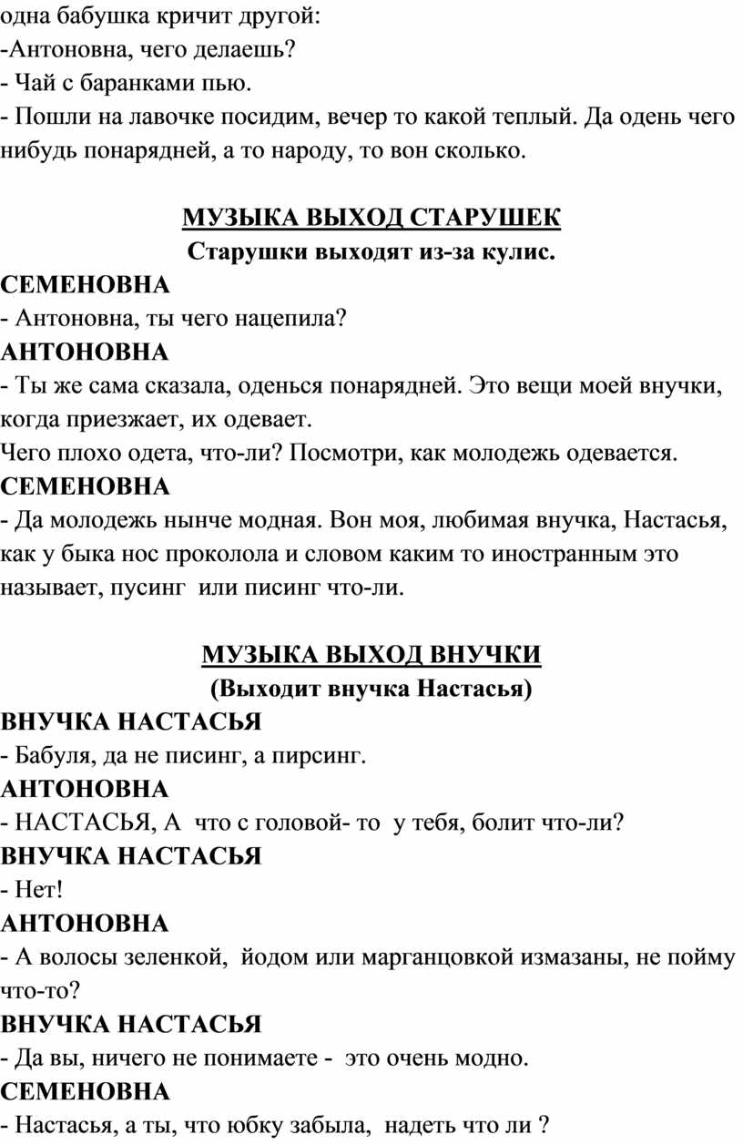 выходят старушки, Кузьмич, внучка Настасья.