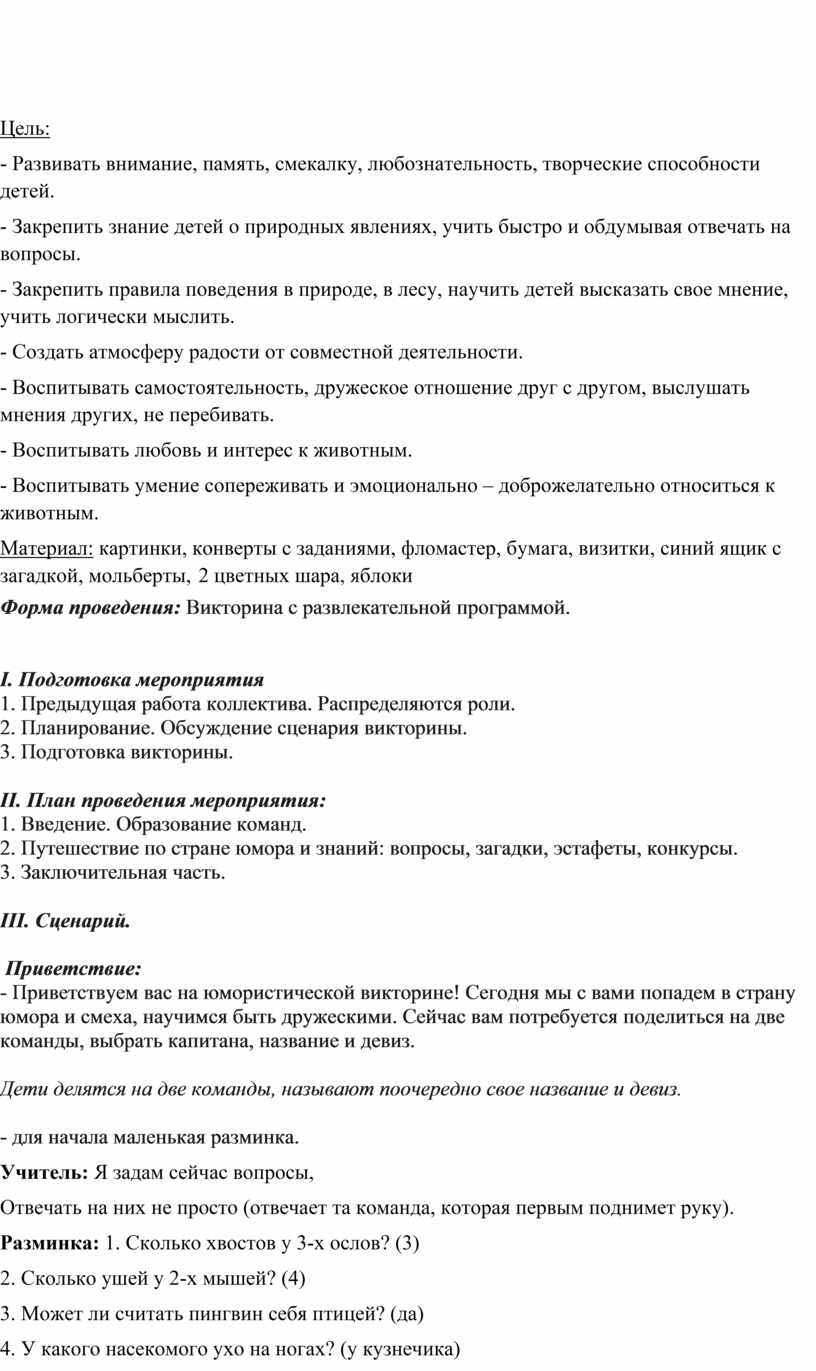 Форма проведения: Викторина с развлекательной программой.