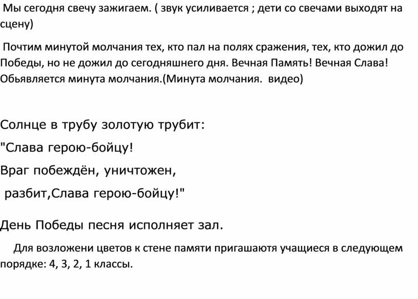 Для возложени цветов к стене памяти пригашаютя учащиеся в следующем порядке: 4, 3, 2, 1 классы.