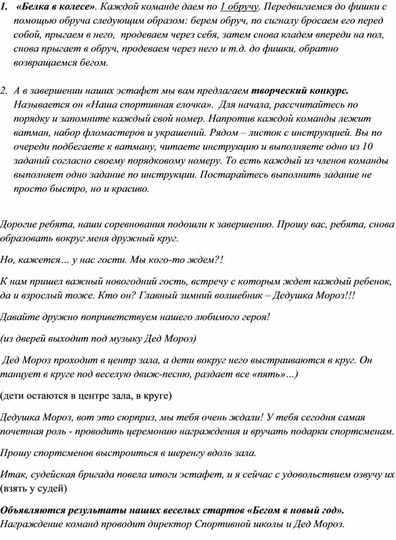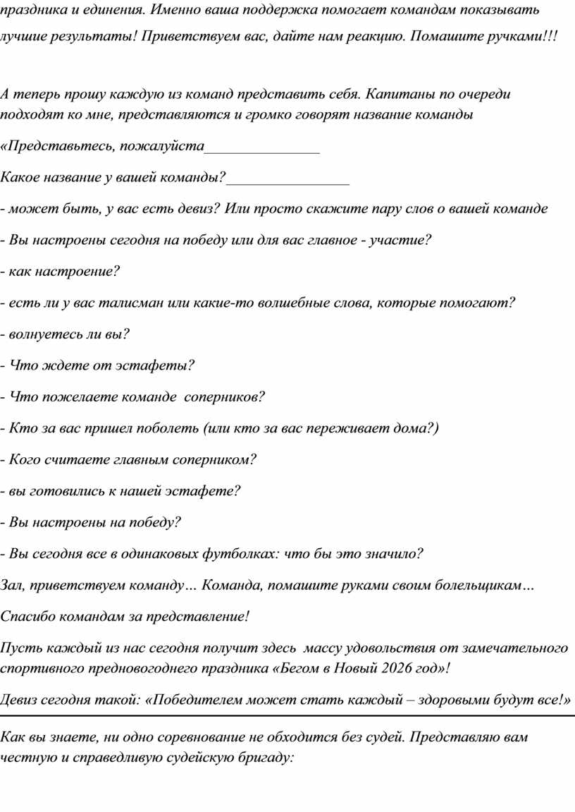 Ведущий: «Добрый день, уважаемые зрители, гости и участники традиционной новогодней эстафеты «БЕГОМ В НОВЫЙ ГОД»!