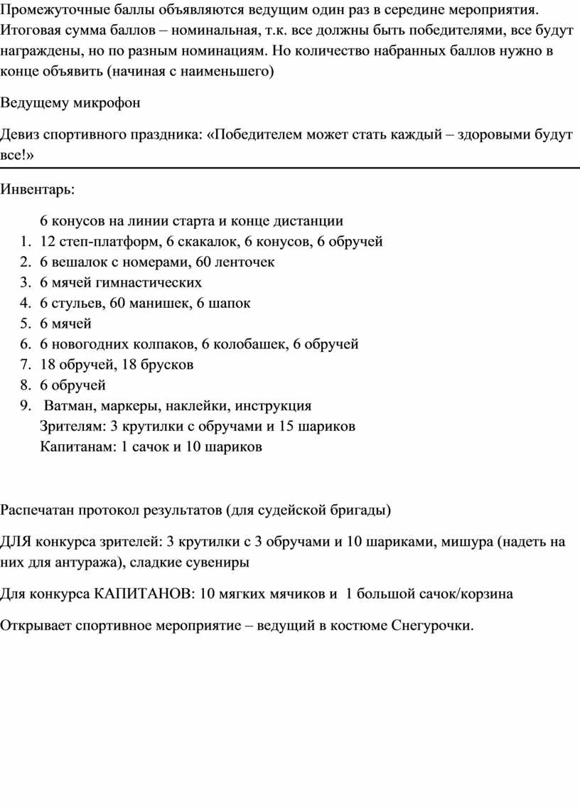 СЦЕНАРИЙ СПОРТИВНО-МАССОВОГО МЕРОПРИЯТИЯ