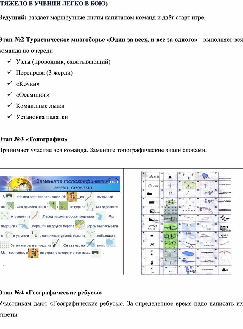 Принимает участие вся команда. Замените топографические знаки словами.