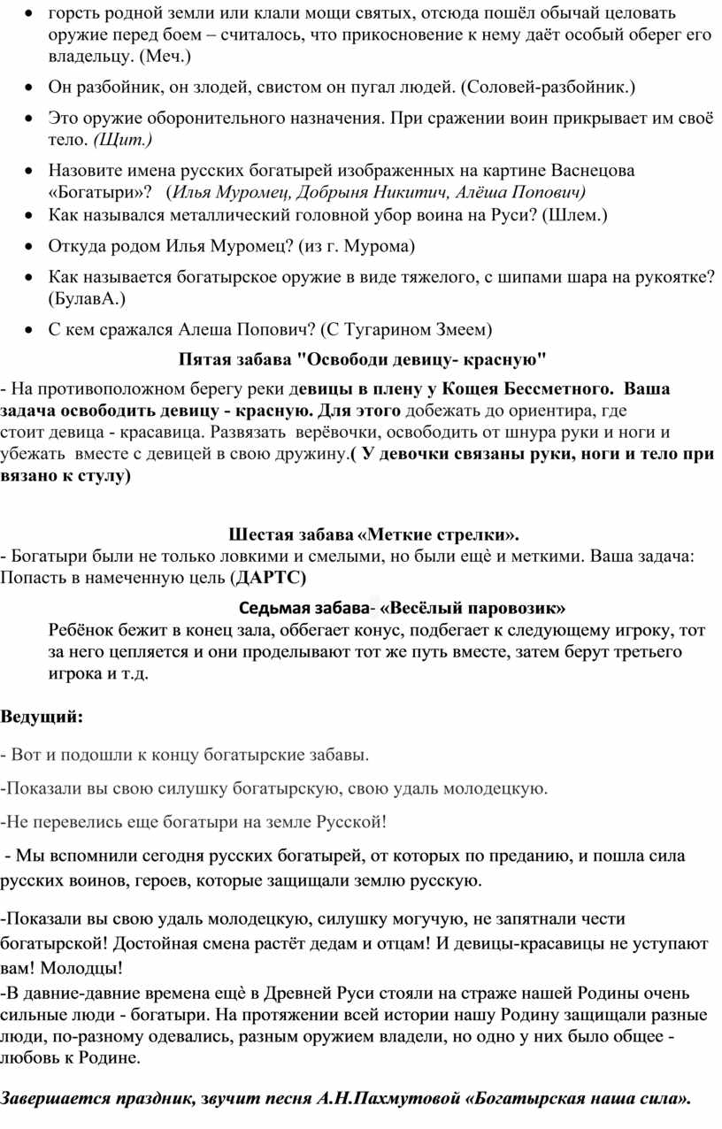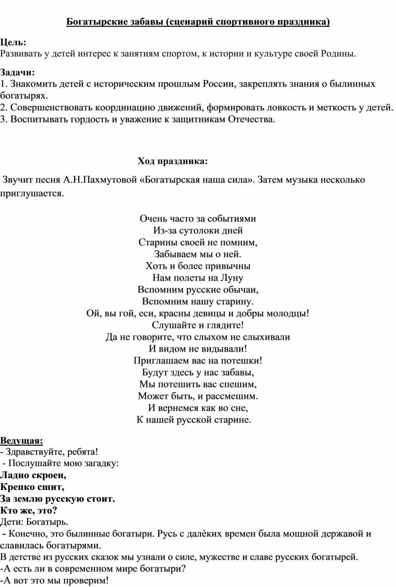Богатырские забавы (сценарий спортивного праздника)